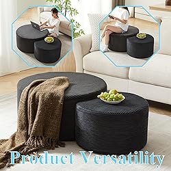 【COMBINE AS YOU LIKE】 Nesting white round coffee table include a large table (Φ 32× 15.7 inch) and a small table (Φ 24 × 13.8 inch). A small table can be placed under the bigger one to save spaces . You can combine them as you like. 【ELEGANCE & FASHIONABLE】 Designed in modern style, the nesting coffee table set is elegant and minimalist, bringing charm to your living room and giving your visitors a good impression of your home. 【UNIQUE & INGENIOUS】 The sponge coffee table is unique and wonderful, allowing you to enjoy coffee in various occasions. Its lines are more elegant, and it is safer than other metal legs, which can prevent babies and children from getting injured. 【NOT TO ASSEMBLE】 You can easily set it up in just a few minutes. Installation instructions and accessories are all in the package. 【EASY TO ASSEMBLE】 You can easily set it up in just a few minutes. Installation instructions and accessories are all in the package.