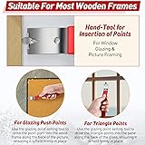 Package Includes: You will receive a glazier point driver tool and 100 glazier points. Sufficient quantity to meet your setting needs and can be used for a long time Wide Application: The glazing point driver tool is suitable for framing glass, picture, cross stitch, etc. Our glazier point setting tool is good match for soft wood and paper frames, may not suitable for plastic frames and hard wood frames How to Use: When installing a new pane of glass, first insert the glass into the prepared frame. And then, use the glazier point setting tool to carefully insert and secure the glazing points around the perimeter of the glass, ensuring it is held firmly in place Quality Material: The glazing push point is made of an iron and zinc plating that will not bend or rust. The glazier's point driver tool is made of hard iron, stable and sturdy, it will be a lifesaver in your daily life Easy to Use: The glazier point driver and glazier's point will make the framing work much quicker and easier. With just a little pressure, the points will set right where they are needed. Even if you're old and don't have much strength in your hands, you can do it easily
