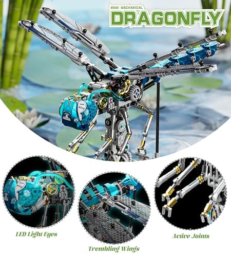 Mechanical Dragonfly Building Blocks for Adults, Insect Animal World Model with LED Light & Display Stand, Educational STEM Toys for Teens 14+ and Adult Home or Office Décor (866PCS)