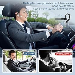 Bluetooth Headset, Wireless Bluetooth Earpiece with mic Trucker Headset for Phone Case Office Phones Built-in Microphone Headphones Manos Libres Noise Cancelling(Black+Silver)