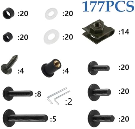 - Widely Application: The motorcycle fairing bolt kit accessories are designed in M5 M6 standard sizes to fit for most sport bike models on the market. This comprehensive bolt set basically includes necessary fasteners for securing upper fairing, windshield, fuel tank cover, side fairing, lower fairing, tail fairing, trim, inner panel, etc.