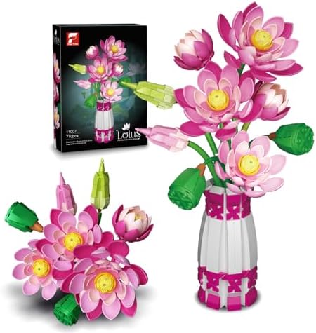 Ideas Lotus Flowers Botanical Building Set, Compatible with Lego Mainstream Brands Adults Collectible MOC flowers Model STEM Toy for Botanical Home Office Decor,Gift for Kids Boys & Girls 8-16 710 PCS