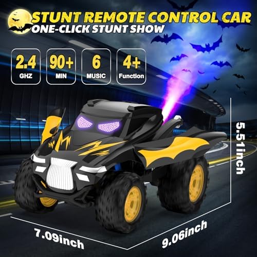 Remote Control Car, RC Cars Stunt Car Toy, 2.4GHz Rechargeable RC Cars with Spray and Music, Ideal Birthday Toys for Boys Age 6 7 8 9 10 11 12