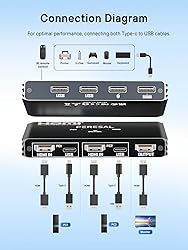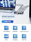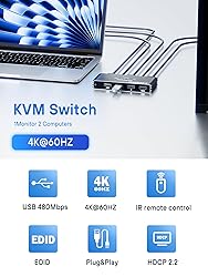 【KVM Switch 1 Monitor 2 Computers】this KVM Switch support 2 computers/laptops share 1 monitor and one set of wired or wireless keyboard mouse and other USB devices 【Support Up to Ultra HD 4K@60Hz】Experience lifelike images and vibrant colors with our KVM switch, supporting up to 4K@60Hz. For the best performance, make sure your input device, HDMI cable, and output device all support 4K@60Hz. Backward compatible with lower resolutions like 1080P, 720P, and 480P, this switch ensures seamless connectivity across a range of devices and display settings 【High-Speed USB Ports】Equipped with 4 USB ports, our KVM switch supports ultra-fast data transfer rates up to 5Gbps, perfect for connecting peripherals like mice, keyboards, printers, webcams, and USB sticks 【Widely Used & Driver-Free】 With wide compatibility, this KVM switch HDMI 2 port box supports Windows 11/10/8.1/8/7/Vista/XP, Mac OS, and Linux systems. Just plug and play and without any installation. This HDMI USB KVM switch is also compatible with most HDMI source devices, such as Nintendo Switch/Switch 2, PS5/4/3, Xbox One, TV Box, PC, Laptop, etc. It is widely applied for Enterprise, Office, Multimedia Teaching, Meeting Rooms, Gaming Rooms, Research Tests, etc. 【After-sales and Product List】The KVM Switch 1 Monitors 2 Computers comes with 12 months after-sales service and 24 hour online technical support. Package List: 1* KVM Switch, 2* USB Cable, 1* User Guide