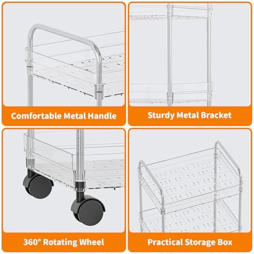 - 【Light Luxury Design Acrylic Storage Cart】 -The Clear modern appearance makes this carts with wheels better integrate into the room,3 tier rolling storage cart Each basket measures 15.4″ x 11.6″ x 2.3″ to provide plenty of storage space