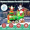 - 🚆【Christmas Train Design with Atmosphere】:This eye-catching 6.2FT christmas inflatables feature Santa Claus, an elf, and a snowman riding along on a colorful festive train, perfect for spreading holiday cheer. Its vibrant colors and playful designs make it perfect for attracting and delighting family, friends, guests and kids during the Christmas season, adding a touch of bright color to any Christmas decor.