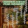 6 Packs Christmas Clear Garland Hanging Ornaments White Pearl Crystal Teardrop Acrylic Beads Xmas Tree Decorations Clear Chandelier Drop Pendant Decorations for Winter Party