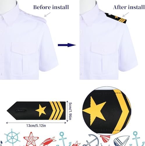 【Great Value Package】you will get a piece of white shirt,a white captain's hat,a pair of sunglasses,a piece of black tie,a piar of shoulder patches and a sailor badage,that are suitable for cosplay parties and they can make you a handsome captain,you can create a cool nautical party with your friends