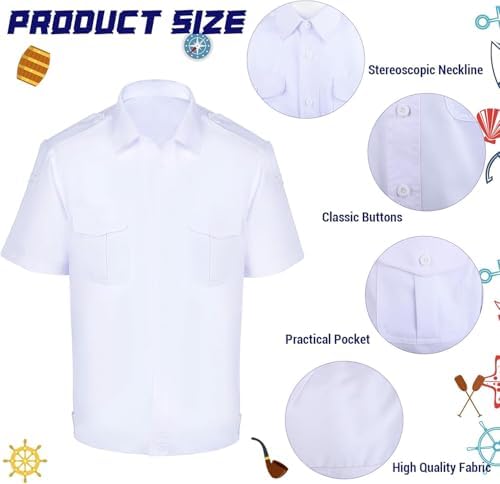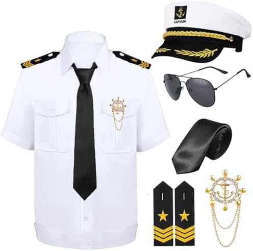 Halloween Yacht Captain Costume Include Captain Shirt,Hat,Glasses,Tie,Patches and Badge for Men Party Dress Up