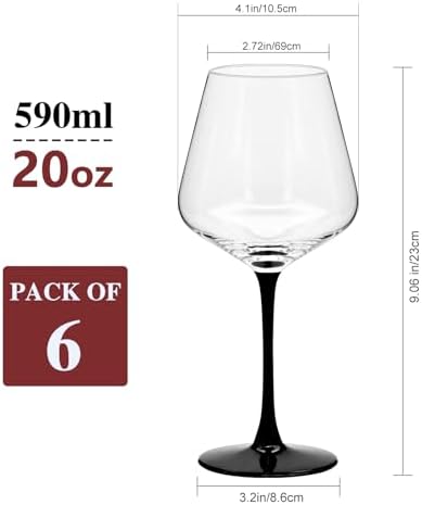 Red Wine Glasses Set of 6, 20 oz Large Clear Burgundy Wine Glasses With Long Stem, Premium Crystal Wine Glass, Unique Gift for Wedding, Anniversary, Mother’s Day
