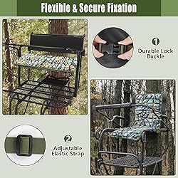 Upgraded Memory Foam Tree Stand Seat Cushion:The deer stand seat cushion is crafted from upgraded memory foam material, offering excellent support performance. Its slow-rebound property evenly distributes the pressure from prolonged sitting, allowing you and your partner to fully enjoy your hunting time Silent & Waterproof Materials: The surface of the 2 man ladder tree stand seat cushion is covered with a camouflage-patterned silent knit fabric, which is silent and stealthy, enhancing hunting success rates. The waterproof leather at the bottom provide outstanding moisture resistance.Treestand seat replacement cushion is also easy to clean, offering a dual upgrade in protection and comfort Foldable, Single & Double Use: Hunting seat cushion pad features a thoughtful foldable design, suitable for two people and single use. It can be flexibly switched according to actual needs, meeting the seating requirements for different scenarios. When folded, the tree stand seat cushion is lightweight and compact, making it highly convenient for carrying and outdoor hunting trips Elastic Strap-Buckle, Quick Install: Tree stand seat replacement cushion comes with 2 sturdy straps and buckles, enabling quick and easy installation and removal. Deer stand cushion firmly locks the cushion in place to prevent slipping, and fit tree stand, deer stand, ladder stand various types of hunting stands Wide Applicability: 2 man ladder stand seat cushion is suitable for a variety of outdoor hunting activities, such as deer hunting and turkey hunting. Its classic camouflage appearance and silent material effectively improve hunting efficiency. Additionally, it's ideal for hunting, camping, fishing, and sports bleachers, providing comfortable resting support