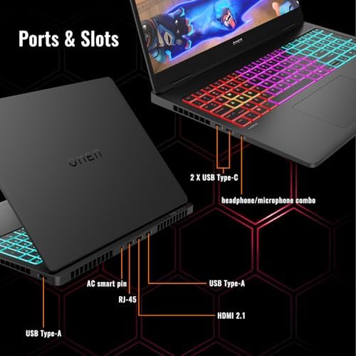 - [Enhanced Connectivity and Versatility] 2 x USB Type-A 10Gbps signaling rate, 2 x USB Type-C 40Gbps signaling rate, 1 x AC smart pin, 1 x RJ-45, 1 x HDMI, 1 x headphone/microphone combo; RGB keyboard; Webcam; Wi-Fi 7 and Bluetooth; Windows 11 Pro