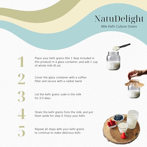 NatuDelight Live Milk Kefir Grains - Non-GMO, Easy to Make Homemade Kefir - Probiotic Starter Culture (1 TBSP) - Reusable, Bulgaros
