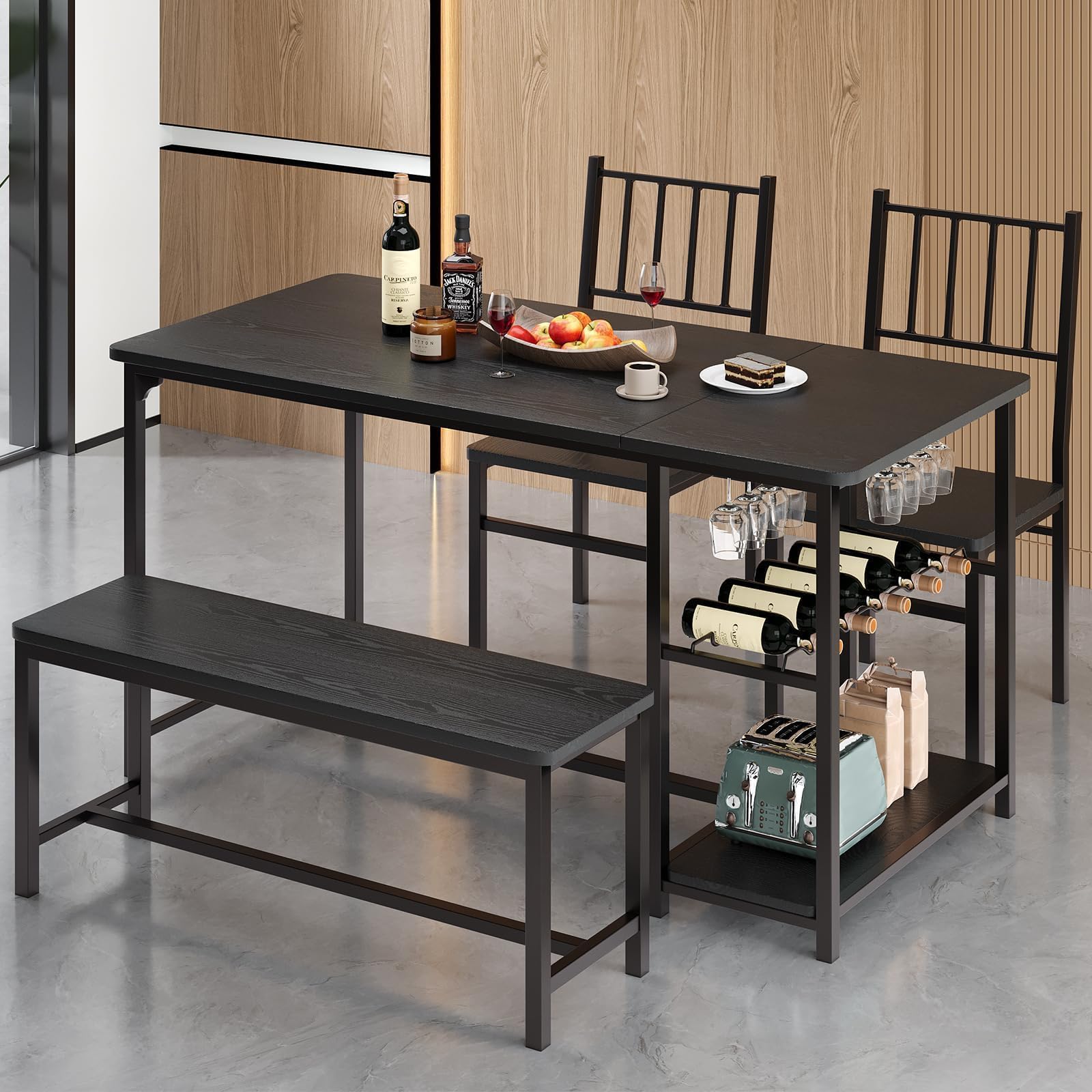 - Multi-functional 4-piece dining table set: This functional dining table with bench includes a table, two chairs and a bench, with flexible seating for up to 4 people. Dining room table set for 4 Ideal for quick meals, morning coffee or family gatherings in your kitchen or dining area