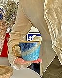 Handmade 12oz Ceramic Mug - Unique Rustic Stoneware Coffee Cup with Jute Handle, Microwave & Dishwasher Safe-blue
