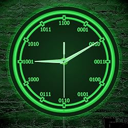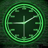 The Geeky Days Computer Binary Code Green LED Neon Wall Clock for Programmer Man Cave Geeky Home Decor Unique Timepiece Coder Illuminated Wall Clock with Black Metal Frame Educational Science Gift