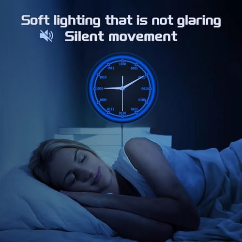 The Geeky Days Computer Binary Code Blue LED Neon Wall Clock for Programmer Man Cave Geeky Home Decor Unique Timepiece Coder Illuminated Wall Clock with Black Metal Frame Educational Science Gift