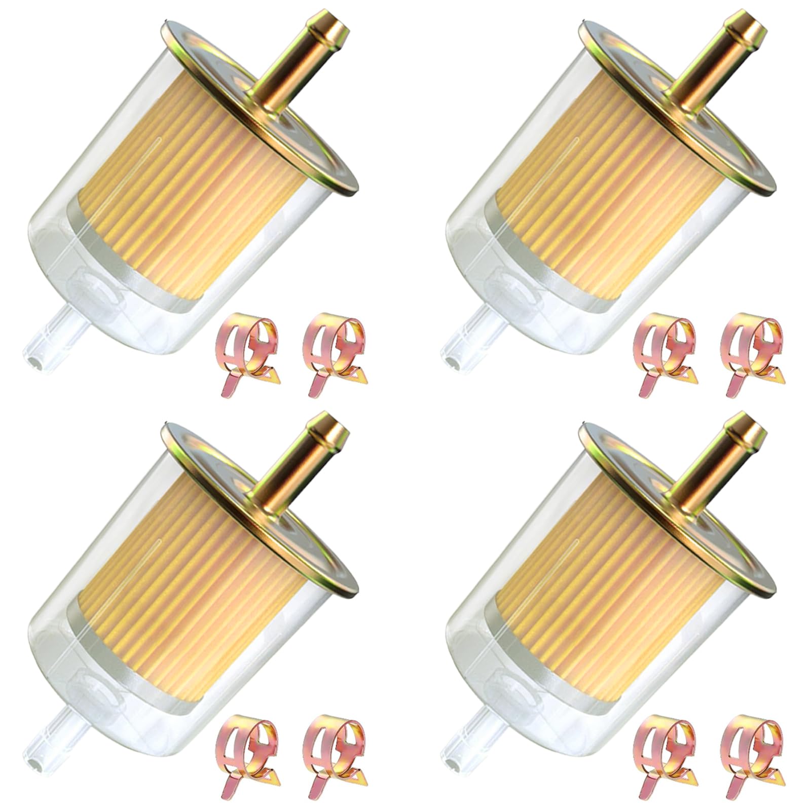 - Features 1/4" barbed fittings for secure connection with standard 1/4 inch fuel hoses. Total length including fittings is approximately 72mm (2.83"), making it compact and easy to install in tight spaces. Ideal for universal applications in motorcycles, ATVs, small engines, and other gas-powered equipment. Compatible with gasoline and E85 fuels.