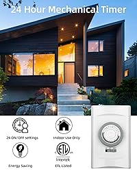 - 24-Hour In-wall Mechanical Light Timer Switch,15-Amp Programmable,30 Minute Intervals,Neutral Wire Required,Manual On/Off/Auto Override, Dial Timer Light Switch for Lights, Bathroom Fan, Exhaust Fan,ETL Listed