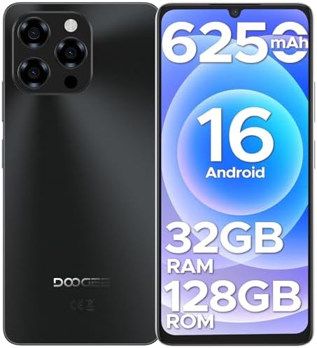 DOOGEE Note 58 Android 16 Unlocked Phones, 32GB+128GB/2TB Expand Cell Phone, 6.6''HD+90Hz Dispaly, 6250mah Battery, 4G Dual Sim Unlocked Smartphone, Widevine L1/NFC/OTG/Face Unlock