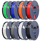 ①【SUNLU PLA 3D Printer Filament Bundle】2kg in Total, 8 Spools of 250g SUNLU 1.75mm PLA filament. Multiple Color Choices, 8 colours:Black+White+Grey+Transparent+Red+Klein Blue+Sunny Orange+Green. Multiple colors satisfy your rich 3d printing creativity. ②【SUNLU 250G Spool Diameter】Spool Diameter: 140mm(5.51 inches), Spool Width: 36mm(1.42 inches), Spool Hub Hole Diameter: 53mm(2.09 inches) ③【High Compatibility】Search for 250g spool adapter on printing platforms such as Makerworld to print out the adapter. After installing the 250g spool adapter SUNLU 250g PLA Filament is perfectly compatible with AMS. ④【PLA Filament Recommend Settings】 SUNLU premium PLA filament offer the advantage of incredible ease of 3d printing. SUNLU PLA filament 1.75mm ,optimized print quality,high purity with low shrinkage and superb interlayer adhesion. Recommended SUNLU PLA filament Print nozzle temperature 200-210℃, Hot bed temp: 50°C-65°C, Print speed: 50-100MM/s. ⑤【Neatly Wound Filament 】SUNLU has a professional production line with strict control of neatly lined up lines to avoid knots during printing.Completely mechanical wire winding and strict manual checks to ensure neat lines with few kinks, avoiding possible breaks. ⑥【High Precision +/- 0.02mm Tolerance PLA filament】1.75mm PLA 3D filament(Tolerance Level : ± 0.02mm).0.25KG 3d printer filament reel, perfect roundness and very tight diameter tolerance,approximately 68m of PLA filament on each spool ease of use,minimal warping,no clogging,no bubbles. Increase your 3d printing objects delicacy. ⑦【High Compatiblity & Vacuum Pack PLA Filament】Compatible with 99% FDM 3D printers (with heated beds) and 3D pen.Vacuum packed neatly arranged SUNLU PLA filament, provide better printing result.Environmental protection, 250g PLA filament is made from starch raw materials derived from renewable plant resources.