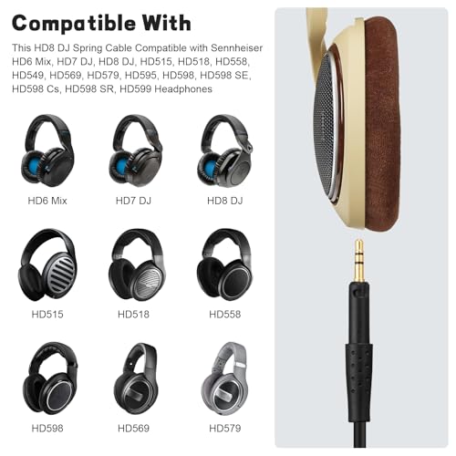 - Compatible with: This HD8 DJ Spring Cable Compatible with Sennheiser HD6 Mix, HD7 DJ, HD8 DJ, HD515, HD518, HD558, HD549, HD569, HD579, HD595, HD598, HD598 SE, HD598 Cs, HD598 SR, HD599 Headphones
