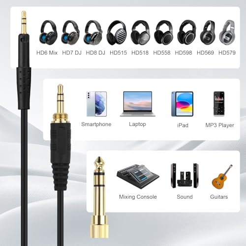 HD8 DJ Cord Replacement Audio Upgrade Cable for Sennheiser HD6 Mix, HD7 DJ, HD8 DJ, HD515, HD518, HD558, HD569, HD579, HD598, HD599 Headphones, 2.5 mm to 3.5 mm Aux Cord with 6.35 Adapter (4 FT-15 FT)