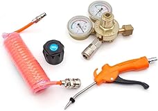 - High Pressure Helium Regulator Kit Solid Brass Valve with Dual Gauge Includes Blow Gun & Braided Hose for Helium Tanks Use Important Safety Notes: For High-Pressure Helium Cylinders ONLY. Do NOT use with low-pressure tanks. Remove T-handle before installation onto cylinder valve. Always use a wrench to securely tighten the inlet connection to the cylinder valve. Ensure compatibility with your cylinder valve. Feature: Premium Solid Brass Construction: High-quality, durable brass valve body ensures longevity and reliable performance under high pressure. Dual Gauge Design: Features two essential gauges: Delivery Pressure Gauge: Precisely monitors and adjusts the output gas pressure. Cylinder Pressure Gauge: Clearly displays the remaining helium level in the tank. Complete Kit: Includes regulator, dual gauges, hand-held blow gun, and flexible braided hose – ready to use. Quick-Connect Blow Gun: Features a convenient quick-connect fitting for easy attachment/detachment of the braided hose. High-Pressure Application: Designed specifically for use with high-pressure helium cylinders. NOT suitable for low-pressure tanks. Removable Pressure Adjustment Handwheel: The T-handle must be removed before attaching the regulator to the cylinder valve. (Critical Safety Step) Secure CGA Connection: The inlet nut (CGA 580 connection) must be securely tightened to the cylinder valve using a wrench to prevent leaks. (Critical Safety Step) Inlet Dust Protection: Equipped with a dust cap to protect the inlet threads when not in use. Package included: 1 x High-Pressure Helium Regulator (Solid Brass Body) 1 x Hand-Held Blow Gun with Trigger 1 x Flexible Hose