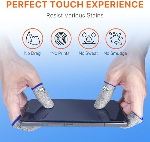 - 【High-quality material】Made of flexible, breathable and comfortable silver fiber material, the touch points are sensitive and can keep up with the operation. The Cell phone Gaming finger sleeve has good stretchability and fits the fingers comfortably. It uses 48-needle dense weaving technology, and the sensitivity is 5 times that of ordinary thumb cots, JWH Dedales gamer which is e-sports level Gaming accessories