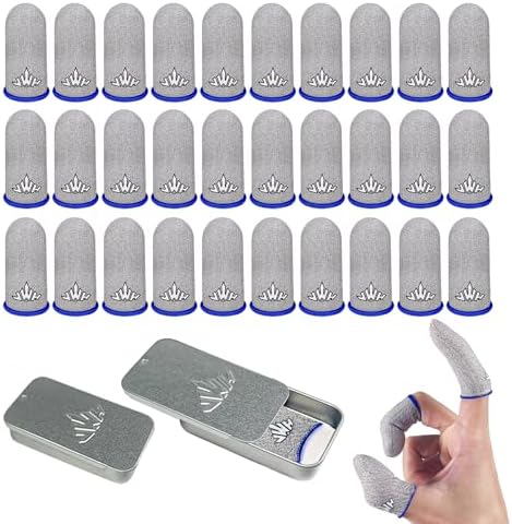 JWH Ultra-Thin Silver Fiber Gaming Finger Sleeves,White Thumb Sleeves Gaming Cots,30 Pack Gaming Finger Gloves for PUBG,with 2 pcs Storage Box,High Sensitivity,Anti-Slip,Fundas para Dedos Gamer