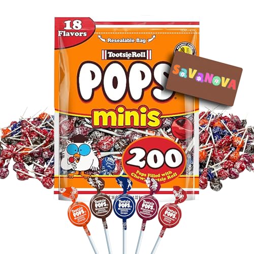 Enjoy 200 miniature Tootsiee Roll Pops in a rainbow of 18 delicious flavors. These mini lollipops are great for gift bags, classroom rewards, or candy dishes at events. Each pop is individually wrapped and Bundled by SAVANOVA Gift, making this pack not only practical but perfectly presentable.