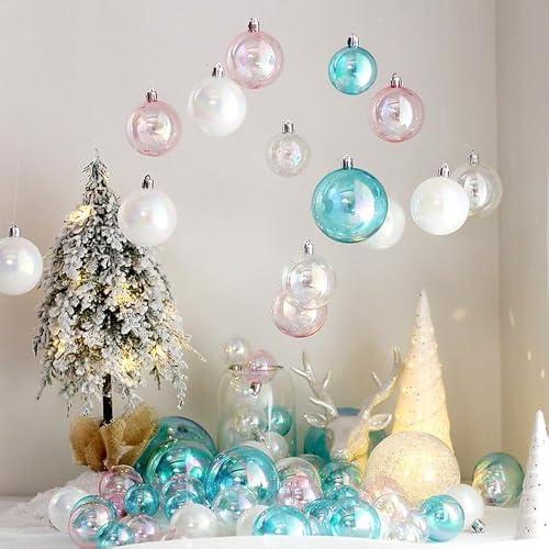 - Vibrant Visuals: Our Christmas plastic rainbow balls feature transparent rainbow hues that shimmer under light, catching the eye and suitable for most Christmas tree sizes, delivering a more dazzling visual experience.The clear plastic balls pair with gold or silver ribbons and miniature light strings to create a magical scene of a galaxy cascading through the branches on Christmas Eve.