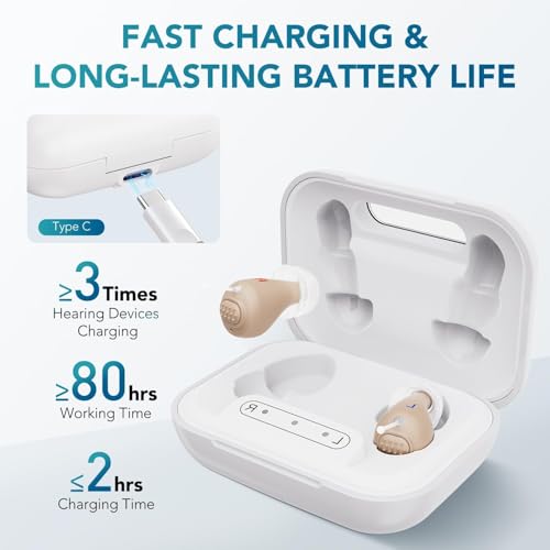 OTC Hearing Aids for Seniors, Rechargeable Hearing Amplifiers Devices with Noise Cancelling, Superior Sound Quality for Women Men Hearing Loss, Auto On/Off