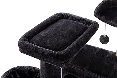 All-in-One Cat Activity Center: Features 2 spacious top perches and 2 cozy condos—perfect for lounging, climbing, and napping in one fun, vertical playground Comfort Meets Durability: Built with CARB P2 particleboard and soft plush fabric. Sisal-covered posts satisfy scratching instincts while protecting your furniture Ventilated 2-Door Condo: Dual-entry condos improve airflow and offer easy access for your cat to move, stretch, and relax comfortably Stable Structure: Reinforced base and solid frame support up to 33 lbs. Includes anti-tip fittings for added wobble-free use Hassle-Free Assembly: Comes with all tools and detailed instructions. Clearly labeled parts make setup quick—ready in about 30 minutes