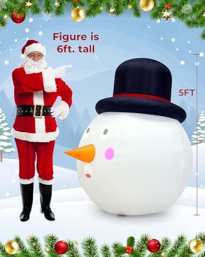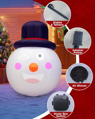 - Christmas Inflatable Outdoor Decorations: This 5ft Christmas inflatable snowman comes with a 2-meter-long rope for easy placement outdoors. It features a music box, LED projection lights, dual expressions, and is made of waterproof fabric, making it suitable for patios, gardens, parties, and holiday scenes.