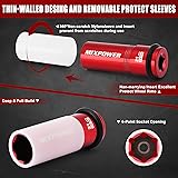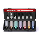 【Premium CR-MO】 Made from drop forged and heat treated chrome molybdenum steel with color electroplate finish to ensure long usage. 【Set include】6 Point,Metric, 1/2-inch Dirve: 17mm,19mm,21mm,22mm,23mm,24mm,27mm. 【Strong Yet Protective】 360° Non-scratch Nylon sleeve and insert protect bolt tops, wheel rims, and lug nuts from scratches during use. 【Laser etching】Non-Marring, Color-Coded, Thin-Walled Wheel Rim Protectors and Laser etched. 【Service Guarantee】All MIXPOWER Tools meet or exceed ANSI performance standards. It comes with 1 year quality guarantee.