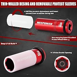 - The MIXPOWER 7 pieces 1/2'' Drive Wheel Protector Impact Socket set, which is made from drop forged and heat treated heat treated chrome molybdenum to ensure long usage. 360° Non-scratch Nylon sleeve and insert protect bolt tops, wheel rims, and lug nuts from scratches during use.All MIXPOWER Tools meet or exceed ANSI performance standards.