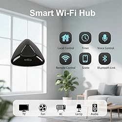 【BLE Setup & Local Control】Introduces BLE setup for near-instant connections, enabling offline control of IR/RF devices (e.g., ACs, curtains). Make simple automations: Turn on AC when your door opens for a cooled room. 【FastCon Integration Hub】The RM MAX serves as a hub to control BroadLink FastCon devices via the upgraded Magic Home App. Once connected to Wi-Fi, it enables remote control and scheduling of FastCon devices; concurrently supporting local inter-device automation with IR products. For example: activating a FastCon bulb can trigger a TV to power on. 【24-Device Hybrid Control Hub】Locally links IR/RF devices; supports online/offline control & learning. Controls 24 total devices: 38KHz IR devices (e.g., ACs/TVs) and 433MHz fixed-code RF devices via adaptive learning. ROLLING CODE IS NOT SUPPORTED. To confirm product compatibility, please contact the seller before purchasing. 【Switch WiFi Without Reset】Switch routers without physical reset—simply re-authorize new network access, reducing post-move reconfiguration hassles. 【Voice & Remote Control】Once connected to 2.4GHz Wi-Fi, you can use the App to control devices from anywhere. Or use your voice to say "Alexa, turn off the TV" to control devices. 【Scheduling & Scene Automation】Program energy-saving schedules (e.g., 7:00 AM blinds opening) or scenes ("Morning Mode"). Supports OTA updates for enhanced performance.