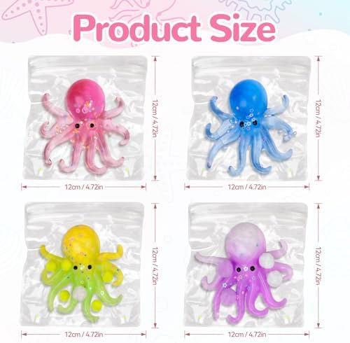 - 4-Pack Variety Set – Comes with four different colored octopus squishies (pink, blue, yellow, purple), making it a fun gift set to share with friends or keep as a personal stress-relief collection.