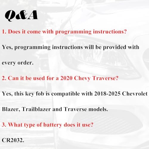 - COMPATIBILITY: Compatible with FCC ID HYQ4ES / HYQ4EA. Please Check Our Product Description and Vehicle Fitment Tool for Full Compatible Vehicles List. This Remote Key Fob Replacement Is Compatible with 2018 2019 2020 2021 2022 2023 2024 2025 Chevrolet Blazer Trailblazer Traverse.