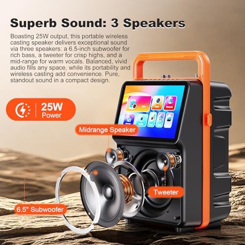 - 25W High-Power Three-Way Speaker System with 6.5-inch Subwoofer: The professional three-way stereo sound system delivers clear high, mid, and low frequencies. With 25W power and a 6.5-inch subwoofer, the sound is rich and layered, offering a cinematic auditory experience. Whether for parties, karaoke, or movie nights, the sound quality is top-notch, providing true-to-life sound.