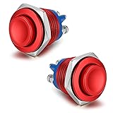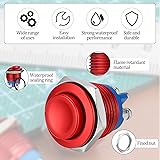 2PCS Momentary Push Button Switch 12V, Momentary Switch 16MM High Round Aluminum Shell, Waterproof Metal Momentarys Switches for Boat Car Truck Horn, AC 12V 36V, 1NO SPST, Screw Terminals, Red