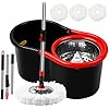 Spin Mop and Bucket with Wringer Set,360° Mop and Bucket System with 3 Microfiber Mop Refills and 50" Extended Handle for Floor Cleaning (Black)