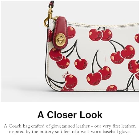 Inspired by archival Coach Y2K designs but perfected for today, our swingy, lip printed Penn bag is effortlessly adorable. (Who doesn’t love a comeback?) Finished with our iconic turnlock closure on the zipper pull, this designer handbag for women can be worn as a shoulder bag or carried as a clutch. It features: 3 credit card slots, zip-top closure, leather lining, detachable strap with 12" drop. 8 1/4" (L) x 4 3/4" (H) x 1 1/4" (W)