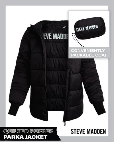 Steven Madden Women Winter Jacket - Packable Quilted Puffer Parka Coat - Hooded Outerwear Windbreaker Jacket for Women, S-XL