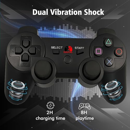 Digital Dynasty 2 Pack Controller for PS3 - Wireless PC Controller for Sony Playstation 3 - Double Shock 3, Bluetooth, Rechargeable, Remote for PS3 - Including 2 USB Cables (Black)
