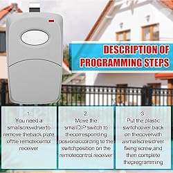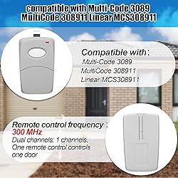 Comprehensive Package for Total Convenience: Each purchase includes 2 pcs 1-channel gate opener remotes compatible with multi code 3089 3089-11 300 MHz, complete with sun visor clips, instructions, and built-in 9V dry batteries. This well-rounded package ensures you're ready to effortlessly control your gate opener upon arrival Effortless Synchronization: Designed for ease, this remote gate opener compatible with multi code quickly syncs with your garage door system. Backed by clear instructions, setup becomes a breeze, simplifying user experience whether at home or in commercial spaces Extended Operational Range: Enjoy a generous 120-foot range with our gate opener remote compatible with multi code, providing rapid response times for seamless garage entry and exit. This feature assures swift, uninterrupted access to your gate opener from afar Easy Programming: Say goodbye to complex installations with our easy-to-program gate opener remote compatible with multi code. The well-thought-out design eliminates intricate wiring, making programming straightforward and user-friendly for everyone Durability for Diverse Environments: Built from materials, this gate opener is designed for longevity. Its robust construction and efficient circuitry make it suitable for a wide array of environments, whether residential, commercial, or industrial