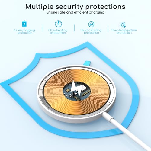 - [ Intelligent Safety Protection ] The apple magsafe charger adopts intelligent chipset, high-quality materials and advanced Mag Safe magnetic coil to ensure safe and efficient charging. The built-in intelligent chip provides multiple protections to protect your iPhone from over-heating, over-voltage, over-charging and short circuits.
