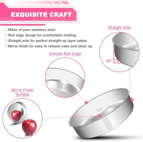 - SAFE & HEALTHY: EWFEN round cake pans are made of pure stainless steel without toxic materials, No harmful chemicals leaching into food, unlike aluminum and carbon steel baking pans with non-stick coating which are thin and lightweight, no more worries about losing coatings, healthy for your daily baking use.