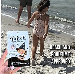 - Quitch Mosquito Bite Relief Patches are a fun, effective way to soothe bug bites without messy creams or harsh chemicals. These dermatologist-developed bug bite patches are powered by a patent pending formulation on a hydrocolloid base that draws out irritants like mosquito saliva, while soothing the itch with natural ingredients like aloe and witch hazel. Designed with kids in mind (but loved by adults too!), these kid-friendly mosquito stickers are gentle, safe, and super easy to use, just peel and stick! Whether you're headed on a road trip 🚗, packing for a family cruise 🛳️, or camping under the stars 🏕️, Quitch Bug Bite Stickers is a must-have for your travel essentials kit. Each patch delivers fast bug bite itch relief and fits perfectly in your backpack, diaper bag, or glove compartment. Say goodbye to itchy nights and fussy bug bite and hello to happy, scratch-free adventures!